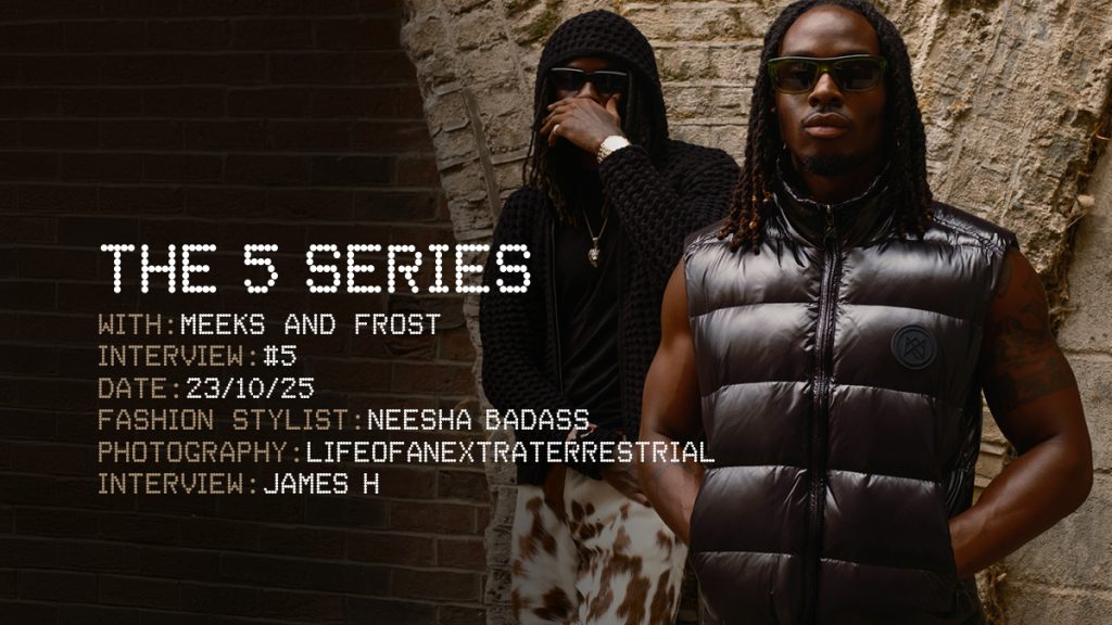 When we first met Meeks & Frost it was clear that the duo come as a pair, one that translates powerfully into their work. Born and raised in London with Jamaican roots, the brothers have built a creative partnership grounded in their shared vision. Having known each other literally since birth their bond runs deeper than collaboration. It’s a brotherhood that informs every story they tell. Their debut work came in January 2020 with the breakout music video for Pa Salieu’s “Frontline,” a raw and electrifying piece that not only marked their arrival but also captured the pulse of a new wave in British music and culture.