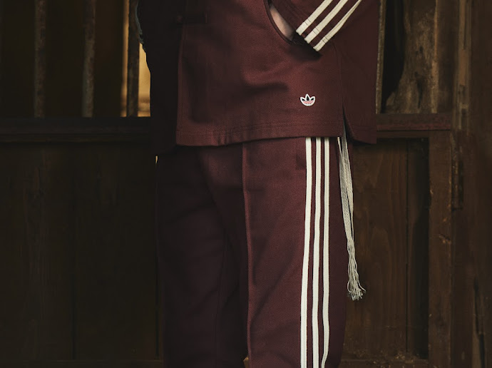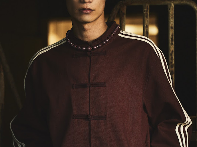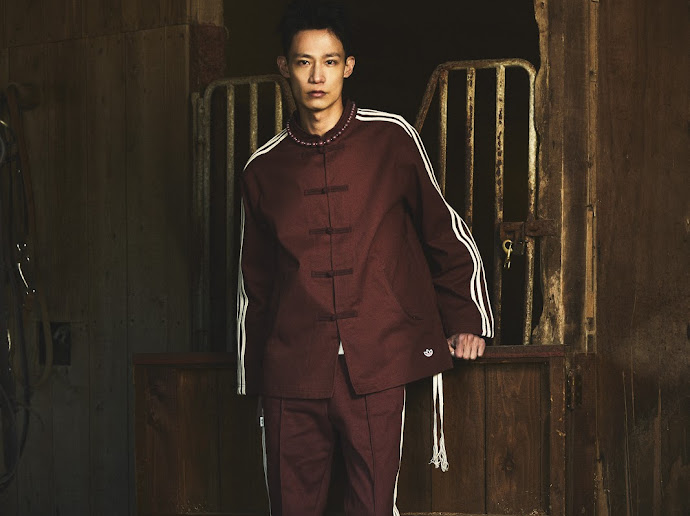The CLOT Track Jacket is one of the best garments in the collection. Created from 100% cotton twill. A Mandarin collar and frog button closures reference traditional Chinese garments, while Western-inspired deco details across the back adds more balance to the jacket. Rope-detailed applied 3-Stripes subtly reinterpret adidas’ most iconic branding. Rounded zip pockets maintain functionable.