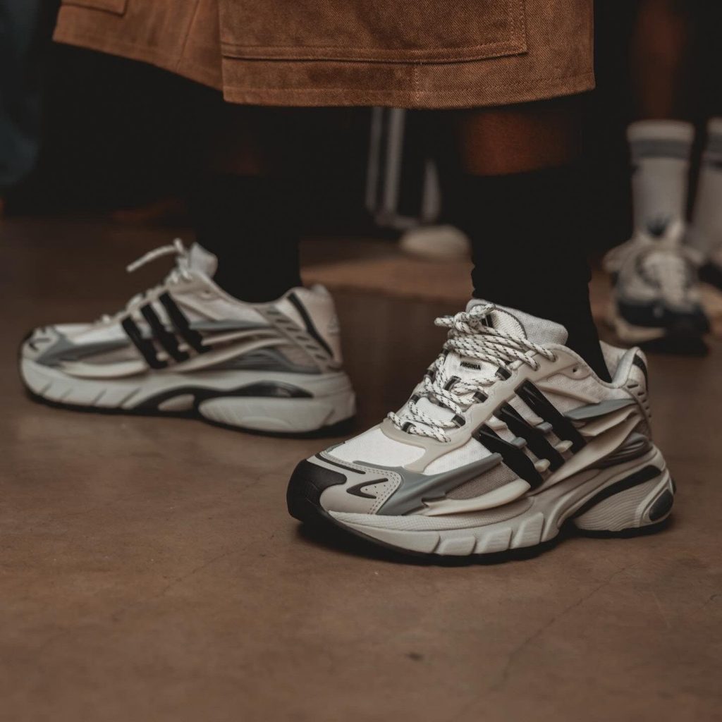 These exaggerated, shell-like layers sit atop a thick AdiPRENE-infused foam sole, engineered to emulate liquid motion while delivering premium cushioning.