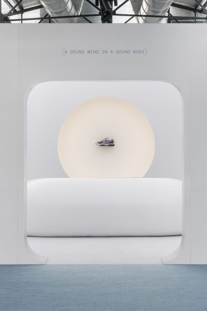 Everything begins with the phrase that defined ASICS since its founding, Anima Sana In Corpore Sano, “a sound mind in a sound body.” The Playscape translates that philosophy into spatial and experimental. Devloped by NUOVA, the installation takes shape as a fictional ASICS research institute. It’s a setting that blends retro-futurist with a contemporary design language.