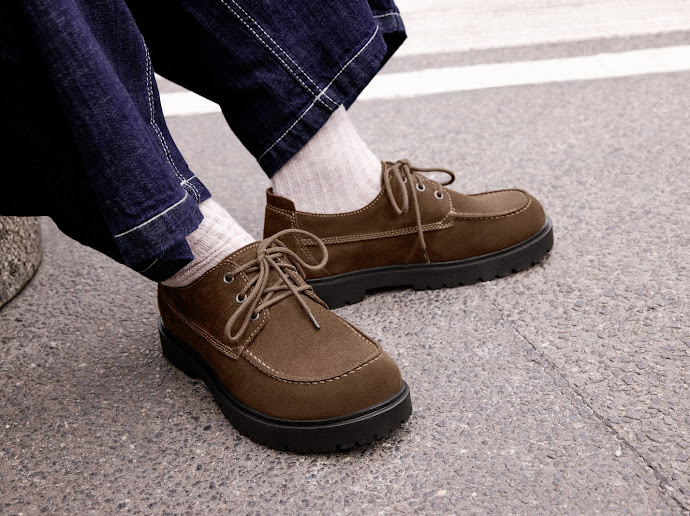 Visually, the Highwood Moc Lace Low draws inspiration from classic moccasin construction. The visible stitching highlights its craftsmanship, giving texture and depth to an otherwise clean silhouette. Crafted in premium suede or grained leather, the shoe is designed to age naturally. Over time, the materials soften and develop character, making each pair uniquely personal.