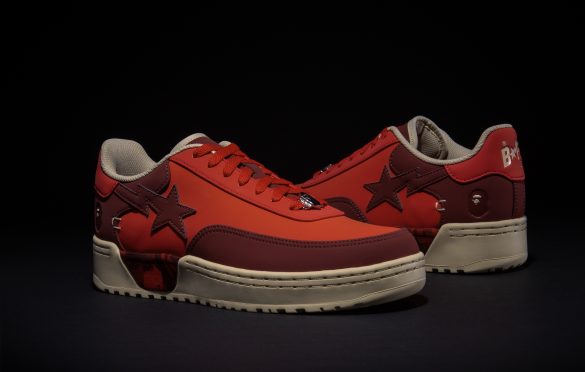 CLOT and BAPE have teamed up before and this time they’re back with a collaboration on the BOLA STA. Built on the foundation of CLOT’s PARABOLA silhouette, this version leans into red tones. The first thing that hits is the leather gradient. Deep red fades into a brighter tone across the upper.