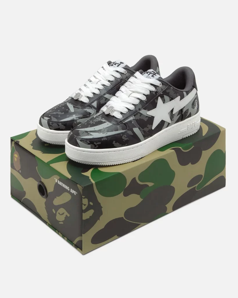 The traditional BAPE Sta construction ensures comfort and durability, with its padded collar and classic rubber sole completing a shoe that’s both fashionable and functional.