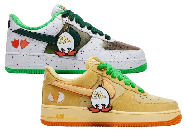 The Ducks of a Feather x Nike Air Force 1 collaboration is a masterclass in humour-meets-design. Produced in partnership with GOAT, the Oregon-based collective delivers two versions of the iconic silhouette this holiday season, each one riffing on the age-old question: Which came first, the duck or the egg?