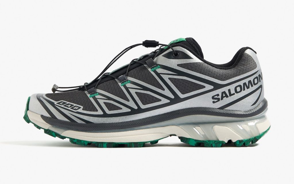 Celebrating 20 years of END., this exclusive collaboration with Salomon reimagines the XT-6 with a refined, anniversary-inspired aesthetic. The sneaker features a sleek grey mesh upper for breathability, enhanced by reflective silver overlays that emphasize its technical roots. Vibrant jade green accents on the tongue labels, eyelet stitching, and marbled outsole inject a bold, celebratory touch.