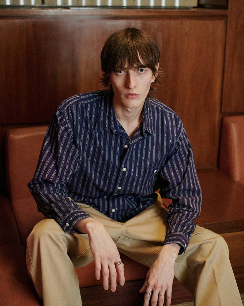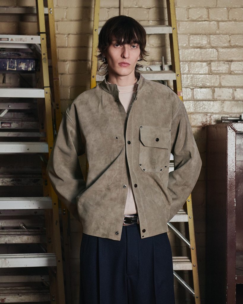 Military references can afill be found in this collection. A deep green update of the reworked Fjord pant is back, while the katsuragi cloth chinos add a form of texture. Originating in Japan’s Kansai region, katsuragi fabric was used in 1920s military uniforms and it respected for its distinctive diagonal weave.