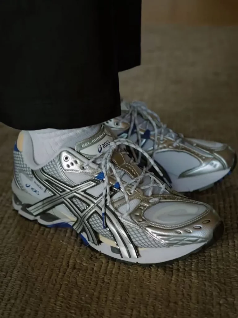 This GEL-NIMBUS 10.1 arrives with a deconstructed aesthetic—think silver synthetic panels torn from a motherboard, black and white mesh that mimics frozen screen fuzz, and vibrant hits of blue and green to simulate a reboot in progress. Dual branding from ASICS and INVINCIBLE anchors the pair, while comfy GEL cushioning keeps it all feeling smooth—even if your browser doesn’t.
