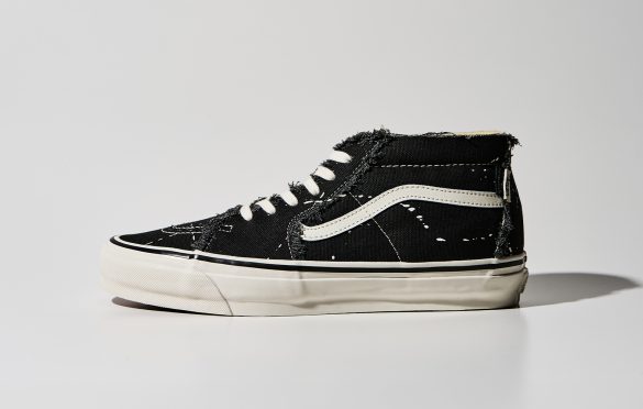 The INVINCIBLE® × Vans SK8-Mid “Off The Rhyme” elevates mid-top skate style with a focus on rhythm and progression. Crafted with double-layer construction, the silhouette reflects the abrasion and wear of skate life, revealing Vans’ iconic checkerboard underlay over time. Left and right shoes carry unique splatter patterns, creating a mirrored yet non-identical aesthetic inspired by jazz’s fluidity and improvisation. The reimagined Jazz Stripe flows across the upper, emphasizing movement and the evolution of skate-worn shoes. Designed exclusively for INVINCIBLE® stores, the SK8-Mid merges heritage Vans elements with inventive design, making it a standout for collectors and skaters alike.