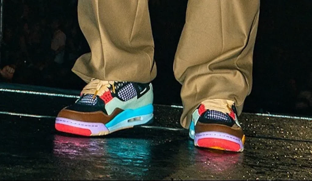You can see the DNA of his previous collabs, the playful palettes, the willingness to go beyond conventional colour placement, but this time, there’s a maturity to it. It looks crafted, not just decorated. What really fuels the conversation is how little it aligns with Jordan Brand’s known releases. There’s no match on the calendar. No official teaser. No leaked SKU. That opens the door to the more interesting possibilities: a friends-and-family build, a stage-only sample, or a one-off pair made specifically for the Medellín show, which ran for seven hours and doubled as a homecoming celebration.
