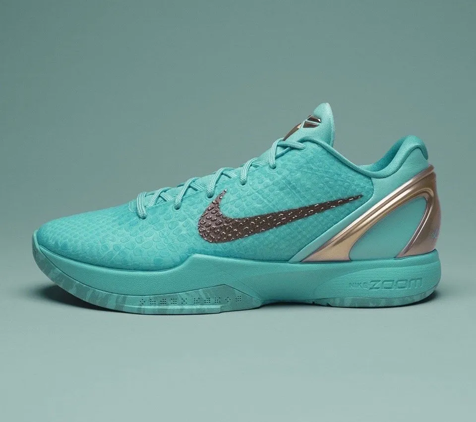 Jalen Brunson’s Nike Kobe 6 Protro “Statue of Liberty” is a tribute to New York City. Unveiled during the 2025 Eastern Conference Finals, this player exclusive made headlines as fast as Brunson racks up assists. Drenched in hyper turquoise, the upper channels the oxidized copper hue of Lady Liberty herself, while metallic copper accents around the heel give it that authentic patina pop. It’s patriotic, it’s powerful, and it’s pure performance.