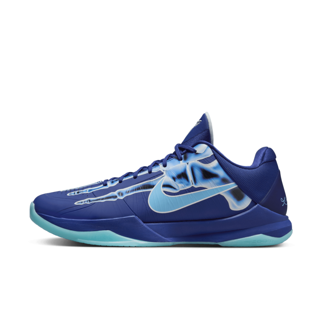 Sporting a Deep Royal Blue upper, the shoe is contrasted beautifully by Baltic Blue accents on the Swoosh and Kobe logos. Its eye-catching aesthetic is enhanced by glow-in-the-dark outsoles and prominent skeleton graphics in Glacier Blue, creating a visually captivating sneaker that symbolizes Kobe’s authenticity both on and off the court.