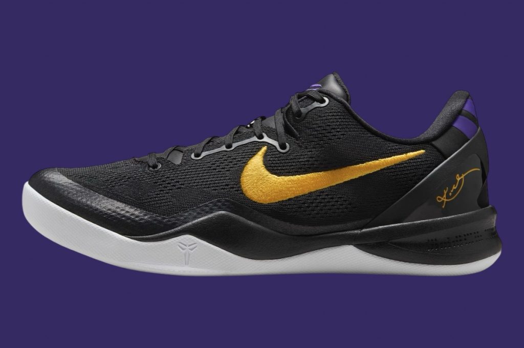 This edition features a bold Black engineered mesh upper for enhanced breathability and durability, perfect for high-intensity play. Embroidered in University Gold, the Nike Swoosh stands out against the black, echoing the Lakers’ unmistakable away-game colorway. Bryant’s signature is etched on the Black heel counter, delivering a personal touch that connects to his legacy. Court Purple accents on the tongue and heel tab complete the Lakers-inspired look, adding just the right amount of LA flair.