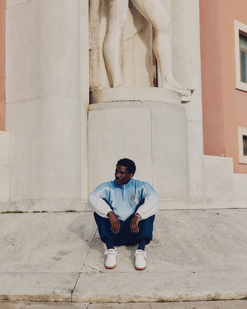 The capsule consists of three jerseys, three tracksuits, and a single quarter-zip, each made with precision and emotion. The garments feature reflective 3M embroidery, premium construction, and dual-branding capturing both Umbro’s prowess and Lorenz’s eye for gradient design. Per usual, colours play a crucial role in shaping the narrative. The palette mirrors the light of dusk over Castel Sant’Angelo, where soft blues and muted greys bleed into one another.