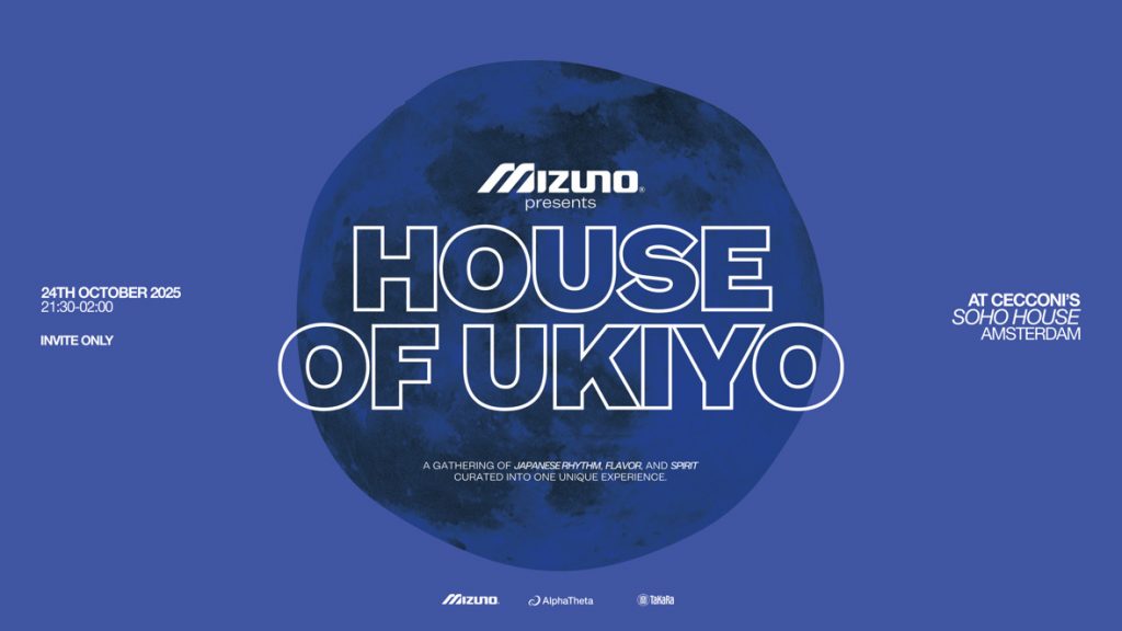 Movement has always been an important language for Mizuno, the Japanese brand loves a conversation between rhythm and innovation, but this October takes on a new frequency. In line with Amsterdam Dance Event (ADE), Mizuno is ready to introduce House of Ukiyo, its first exploration into sound and atmosphere. For a brand built on energy and motion, venturing into the music scene feels like a true nature. Mizuno’s spirit thrives where rhythm lives, and in the heart of Amsterdam, a city that becomes one major living soundscape each October, House of Ukiyo marks the beginning of a new chapter for Mizuno. The invite-only event will take place on Thursday, 23rd of October 2025 at Cenconni’s Soho House in Amsterdam, taking place from 21:30 to 02:00, with support of AlphaTheta and Takara.