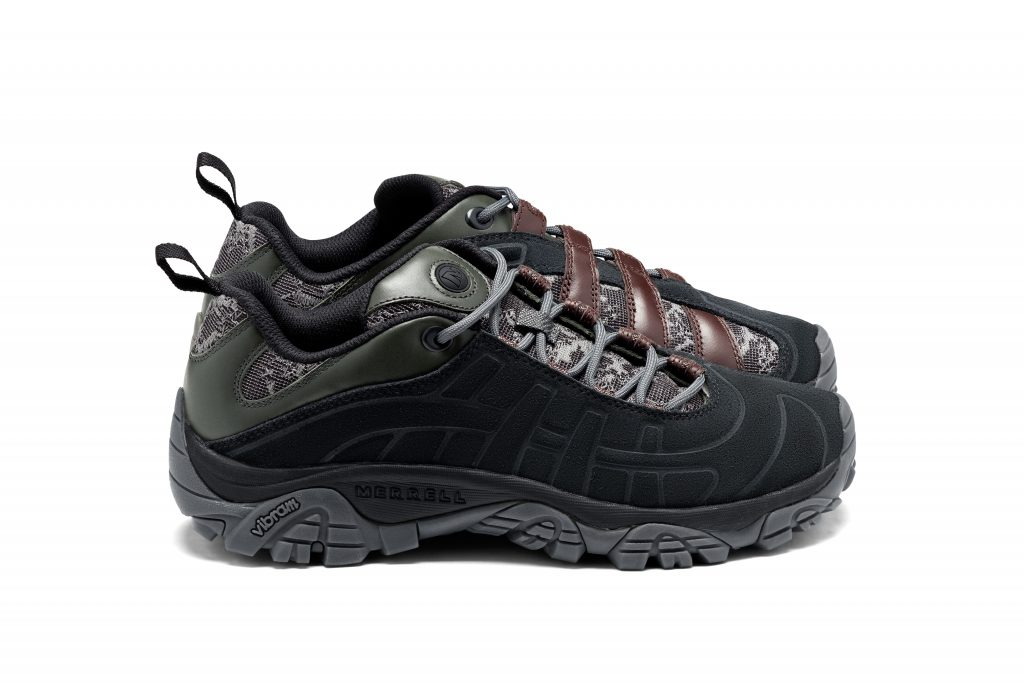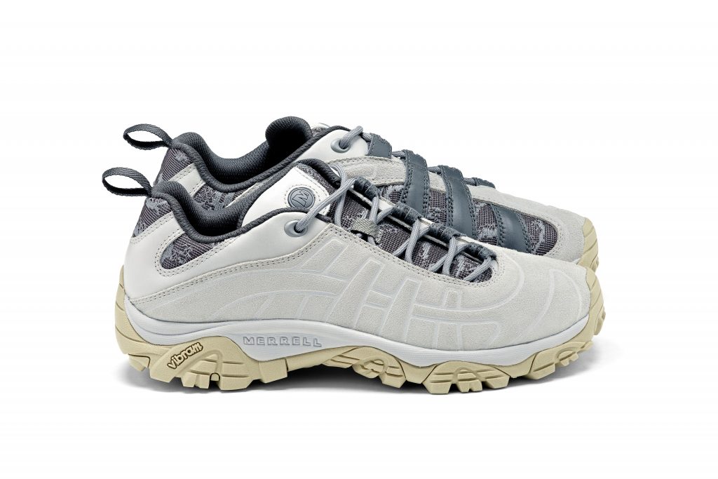 Grounding the look is the Merrell 1TRL Moab 2 Remix in Pigeon and Alloy. Both colourways have an understated tone, cool greys and muted neutrals that echo the garments above. The upper mixes suede and mesh with a ruggedness, while the sole unit carries the grip Moab is known for.