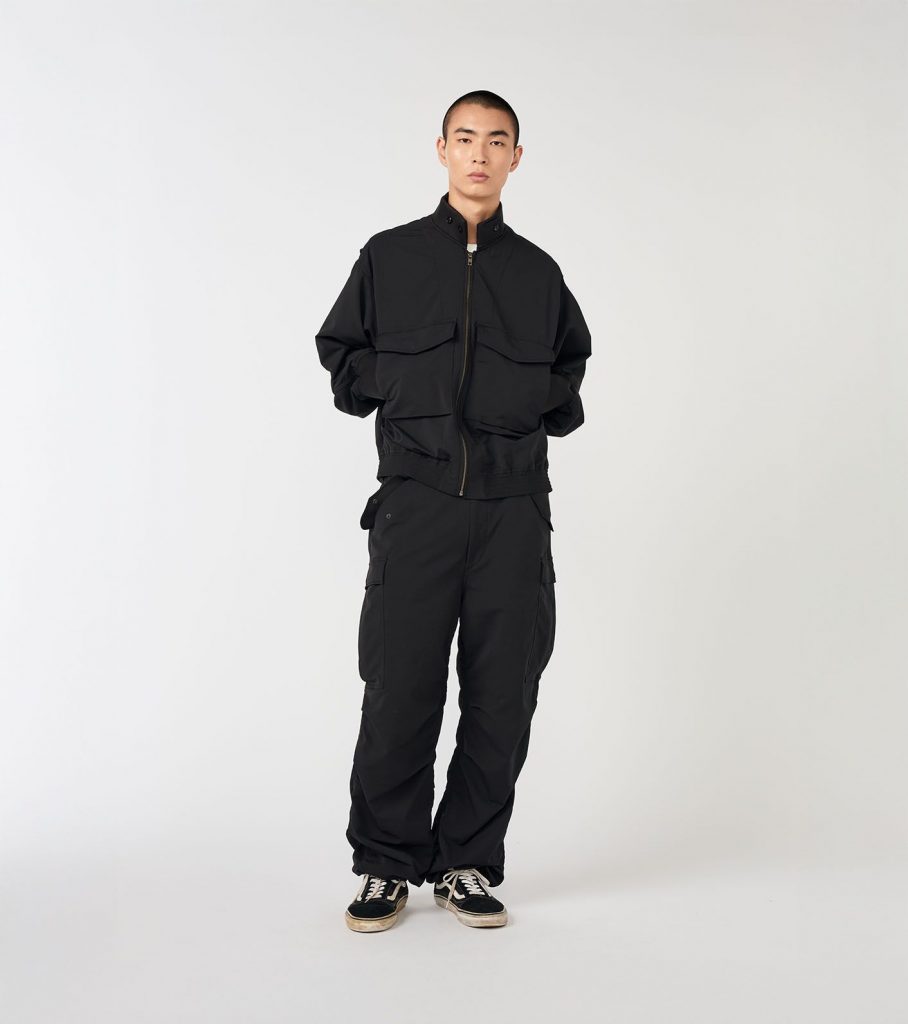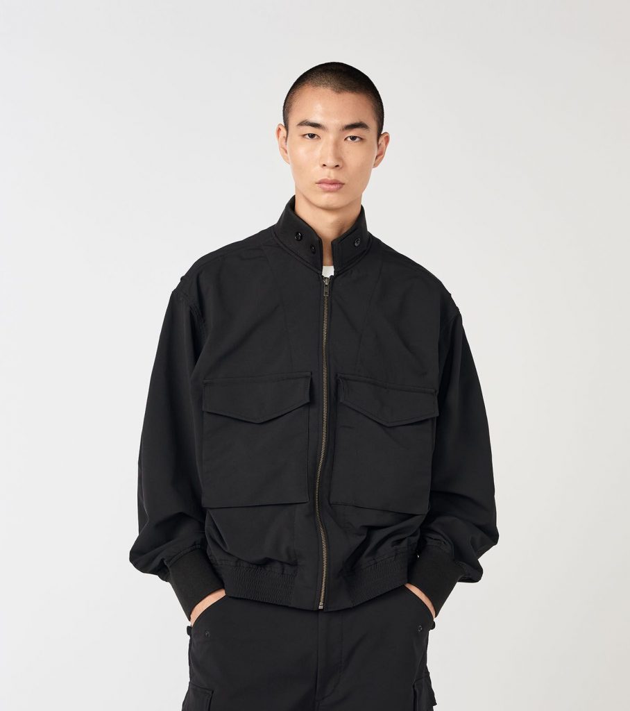 nanamica’s strength has always been about transformation. The Polyester Twill Club Pants look traditional at firstook, clean front, straight leg, tailored fit, but the materials are a different story. The twill holds structure while remaining lightweight. Up top, the Chambray Pullover Shirt Jacket softens the outfit. Its washed texture and relaxed cut add depth, layering perfectly over a tee or under outerwear. Then the ALPHADRY Field Jacket, with a sharp collar, practical pocket placement, and a fabric engineered to withstand moisture and temperature.