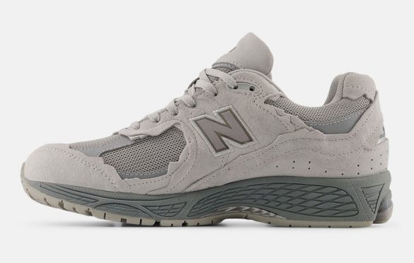 The New Balance 2002R Gore-Tex “Protection Pack” in Grey brings the line back to the aesthetic that helped define its second life, those jagged, uneven overlays that look torn rather than cut, as if the shoe was shaped by erosion rather than a factory tool. This version takes that idea and folds it into a cooler, more subdued palette. Shades of grey anchor the design, but the soft blue notes, charcoal shadows and faint touches of tan keep the shoe from sinking into monotone territory.