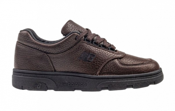The upper arrives in deep tumbled leather, textured and supple, rendered in a hue that feels indulgent yet grounded. Embossed NB branding sits low-key on the side, complementing the black midsole beneath. Together, they create a balance that reads more “refined outdoors” than overtly athletic.