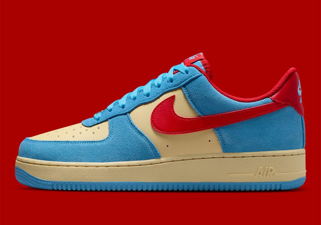 Light blue suede overlays and deep red accents on the Swoosh and heel cap channel Doraemon’s signature colors, bringing a fun yet wearable aesthetic to the timeless AF1. The mix of suede and leather adds depth and texture, while a cream leather base offers a subtle contrast that grounds the bold palette. Balancing nostalgia with everyday versatility, the Nike Air Force 1 Low “Doraemon” is a must-have for sneakerheads and anime fans alike.