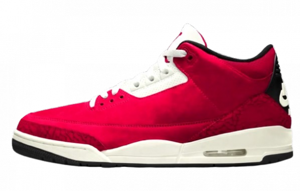Elephant print panels remain in place but take on a quieter role, allowing the red upper to lead while preserving the AJ3’s signature texture. Black details on the lining, heel tab, and outsole add structure and contrast, preventing the shoe from drifting too far into novelty territory.