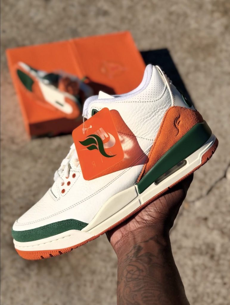 The Miami-based boutique SoleFly reunites with Jordan Brand to pay tribute to the city, its cultural undercurrent and the street heritage that defines both brands. First teased during a high-profile moment, a Hurricanes vs Notre Dame game, with SoleFly founders Carlos Prieto and Daniel Hidalgo joined by Miami legends Andre Johnson and Ed Reed, the collaboration is steeped in community and local pride.
