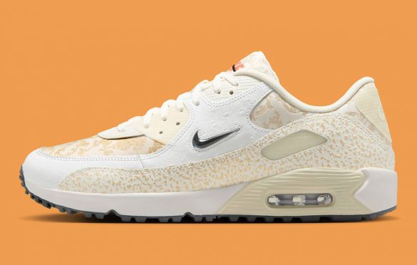 The Air Max 90 Golf “Scottish Open” is adorned with premium materials that echo the luxurious tastes of the monarchy. It features ostrich leather overlays, a patterned silk base, and Sail leather panels embedded with metallic gold flakes for a touch of opulence. But Nike’s signature irreverence comes through with the tongue and insole branding, bright orange “Golf” text is boldly crossed out, referencing the sport’s once-illegal status under royal decree. It’s a satirical yet stylish take on golf heritage, merging Nike’s design flair with a playful historical reference. Whether you’re on the course or off it, the Air Max 90 Golf “Scottish Open” brings a sense of legacy, luxury, and layered storytelling to every step