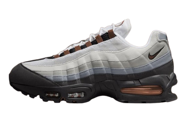 But it’s the brown detailing that shifts the emotional tone. The Fauna Brown lace loops and mini Swoosh soften the industrial feel of the base palette, introducing warmth and subtlety where the AM95 has often been sharp and mechanical. The finishing touch, that sepia-tinted Air unit, grounds the look with a nostalgic tint that hints at late-’90s urban fashion and the golden age of visible Air.