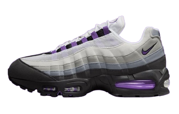 The lace loops, heel tabs, tongue embroidery, and even the edges surrounding the visible Air units all pop with that vivid violet hue, controlled yet energetic. Underneath, the Big Bubble sole units signal Nike’s continuous evolution of Air Max technology, offering an enlarged take on visible cushioning that nods to early prototypes from the Air Max 1’s development era.