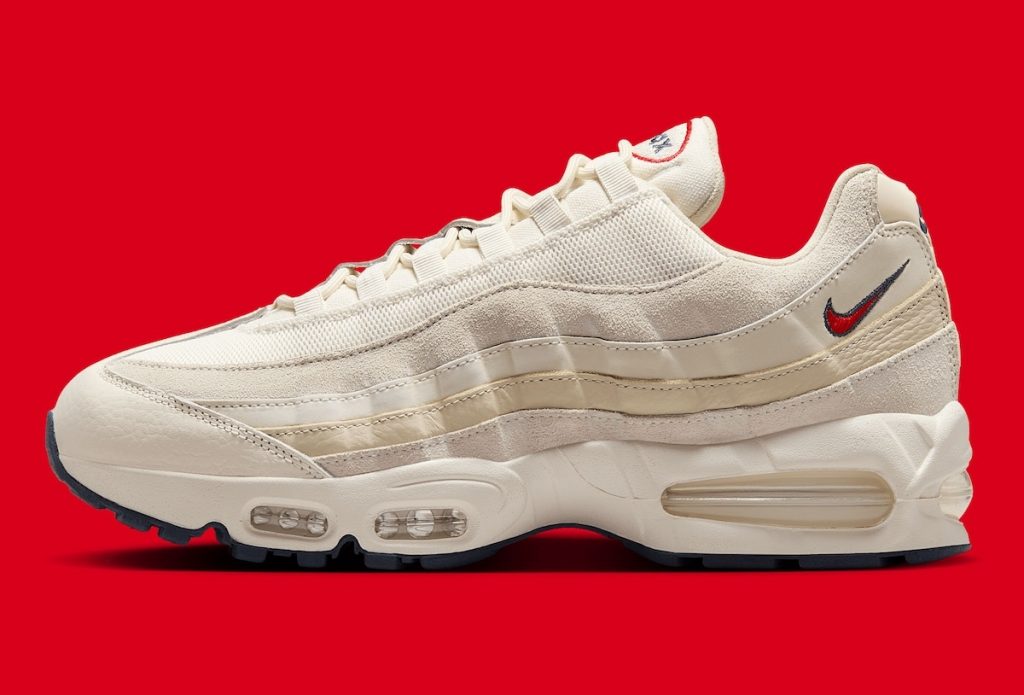 A translucent side panel adds a modern twist, delivering depth and dimension without overpowering the neutral palette. Pops of tiny red Swooshes on the heel bring subtle energy, while navy outsoles and Air units ground the look with contrast and classic Nike DNA. Understated tongue and heel branding tie it all together with minimal fuss.Whether you’re pairing them with linen for brunch or joggers for a quick errand run, the “Pale Ivory” 95s flex hard without trying too hard. Clean, calm, and quietly confident—just like you.