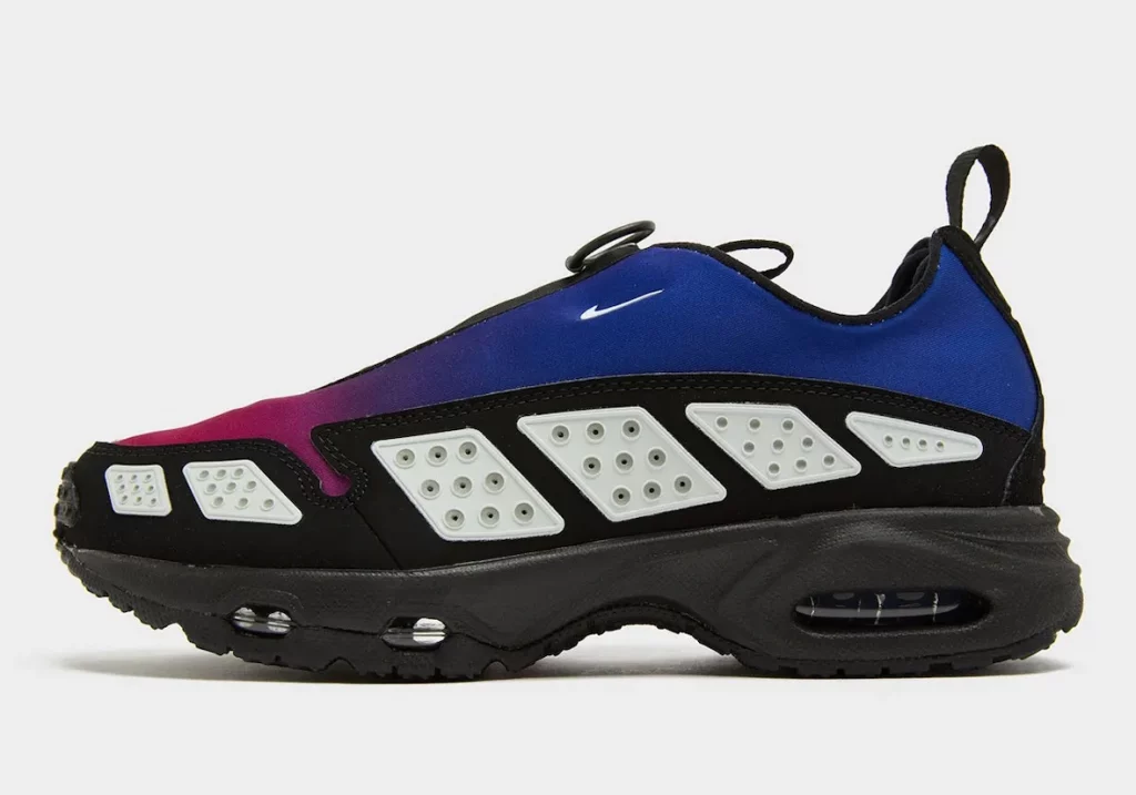 The Nike Air Max Sunder “Deep Night” isn’t here to blend in—it’s here to glow up. This women’s-exclusive release revives the bold silhouette that made waves in 2023, now drenched in a dramatic gradient that fades from electric pink to twilight blue. Metallic silver overlays and a central zipper add futuristic flair to this already eye-catching design, delivering serious techwear energy with a splash of sunset vibes.