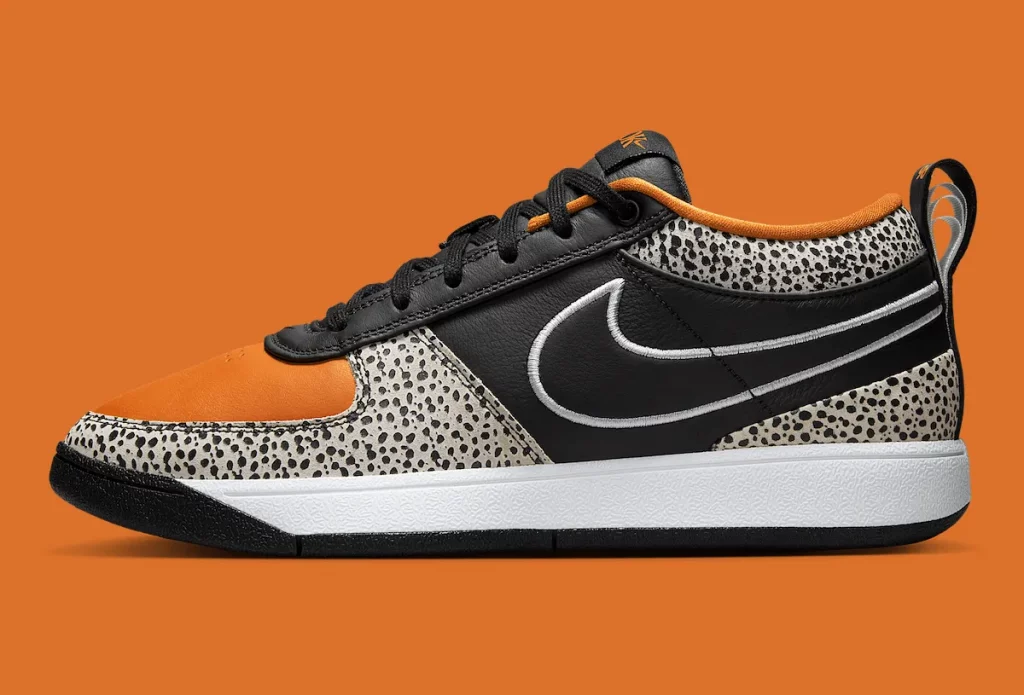 The Nike Book 1 “Safari” answers the call of the wild with fearless style. Devin Booker’s latest signature sneaker takes cues from Tinker Hatfield’s legendary 1987 Air Safari, combining vintage flair with a performance-first mindset. Burnt orange leather sets the tone, accented by speckled safari-print overlays and a sleek black leather base. Inside, plush orange lining brings elevated comfort, while the Zoom Air unit fuels explosive moves on and off the court.