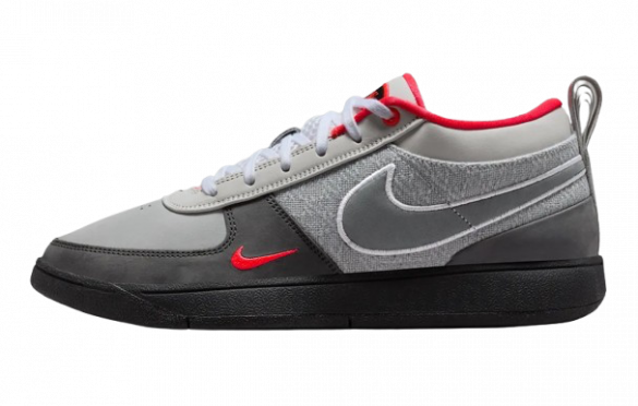 Layered grey gradients flow across the upper, a subtle nod to the Air Max heritage, while bursts of Solar Red illuminate the lining, tongue branding, and miniature Swoosh. Smooth black detailing on the midsole and leather trims adds balance, grounding the look in Booker’s refined minimalism.