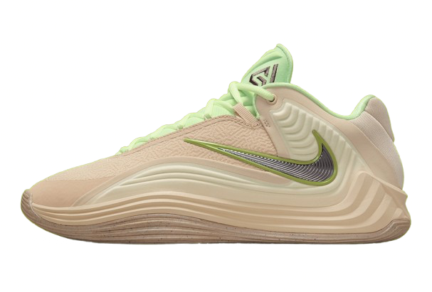 The khaki base gives the shoe a versatile look, while supporting shades of Cave Stone and Alabaster build depth across the panels. Bold Volt detailing is used sparingly across the tongue and lining, injecting contrast and energy in a way that mirrors Giannis’ explosiveness. A ridged, sculpted Swoosh stretches across the upper, bringing modern edge to the design language.