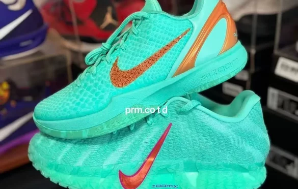 A Bleached Turquoise mesh upper provides the foundation, highlighted by Vivid Purple and Safety Orange detailing across the dual Swooshes and lining. The tongue features a Twelve Time badge, while motivational phrases, “Bucket in the backyard or bucket in the league”, adorn the inner tags, reinforcing Morant’s belief in self-made greatness.