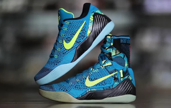 The Flyknit upper, light, breathable, and form-fitting, takes centre stage in a vivid Neo Turquoise hue, while Volt Flywire cables integrate directly into the lacing system for adaptive lockdown. The midsole, reinforced with carbon fibre, balances spring and stability, allowing for the explosive agility that defined Kobe Bryant’s game.