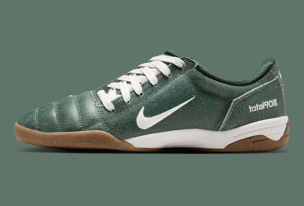 Nike takes a nostalgic step forward with the Total 90 III “Fir”, transforming a 2000s football icon into a rugged streetwear staple. Once laced up by legends like Luis Figo, the Total 90 is now ready for your everyday rotation, with all the retro vibes intact. This lifestyle revival trades pitch polish for a cracked forest green leather upper, delivering texture and toughness in equal measure. White laces, branding, and midsoles pop against the moody base, while a gum rubber outsole anchors the look in classic terrace style. Blending heritage with modern comfort, the “Fir” edition isn’t about goals anymore, it’s about fits. Whether you’re headed to the pub or posted on the pavement, the Total 90 III brings early-aughts flair with updated street appeal.
