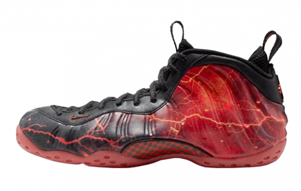 The Foamposite shell moves from deep black into a molten red gradient, mirroring the visual chaos of the Upside Down. Lightning-style graphics crack across the upper, adding tension and movement even when the shoe is standing still. The execution feels cinematic, more like a visual narrative than a colourway built for easy wear.
