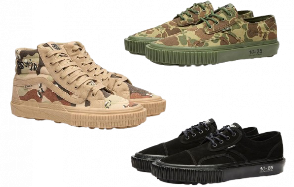 Joining the two Seylynn pairs is a Sk8-Hi, which receives the same chunky outsole treatment. WTAPS directs the palette, leaning into its longstanding military influences with a beige camouflage for the Sk8-Hi and a medium camo for one of the Seylynn options. The third pair, an all-black Seylynn, feels like the sleeper hit of the collection.
