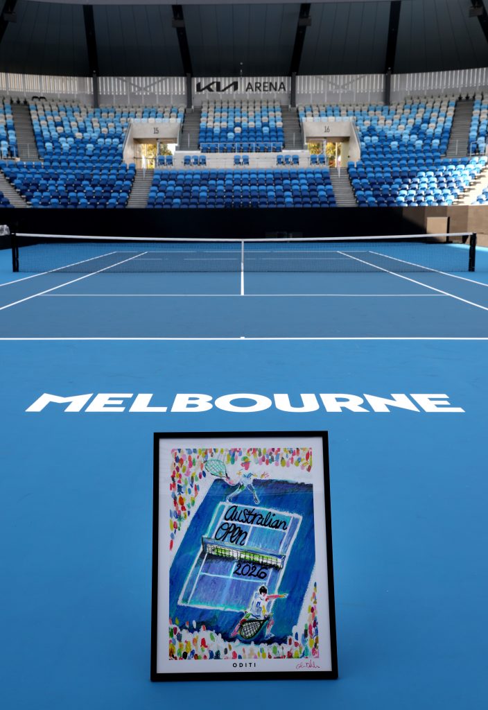 Produced exclusively for the tournament, the artwork brings together ODITI’s artist-led, museum-quality approach to printmaking with KidSuper’s recognisable visual language. The poster captures the movement, emotion and atmosphere that surrounds the Open each year.