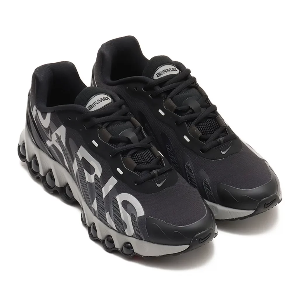 This PSG edition keeps it stripped-back and tactical, blending black and dark grey tones across a layered synthetic mesh upper. The look is all function-meets-form, defined by the DN8’s signature eight-chamber cushioning unit and jagged striations that enhance both breathability and style. On the lateral sides, the club’s “Paris Saint-Germain” spellout is subtly etched into the design, integrated with the shoe’s geometric pattern for a razor-sharp finish. Releasing alongside a PSG-themed Air Max Plus, this drop feels less like a sportswear collab and more like a unified design ethos, showcasing Parisian flair with a performance edge. Set to launch on June 18th, the PSG x DN8 cements itself as more than a follow-up, it’s a statement.