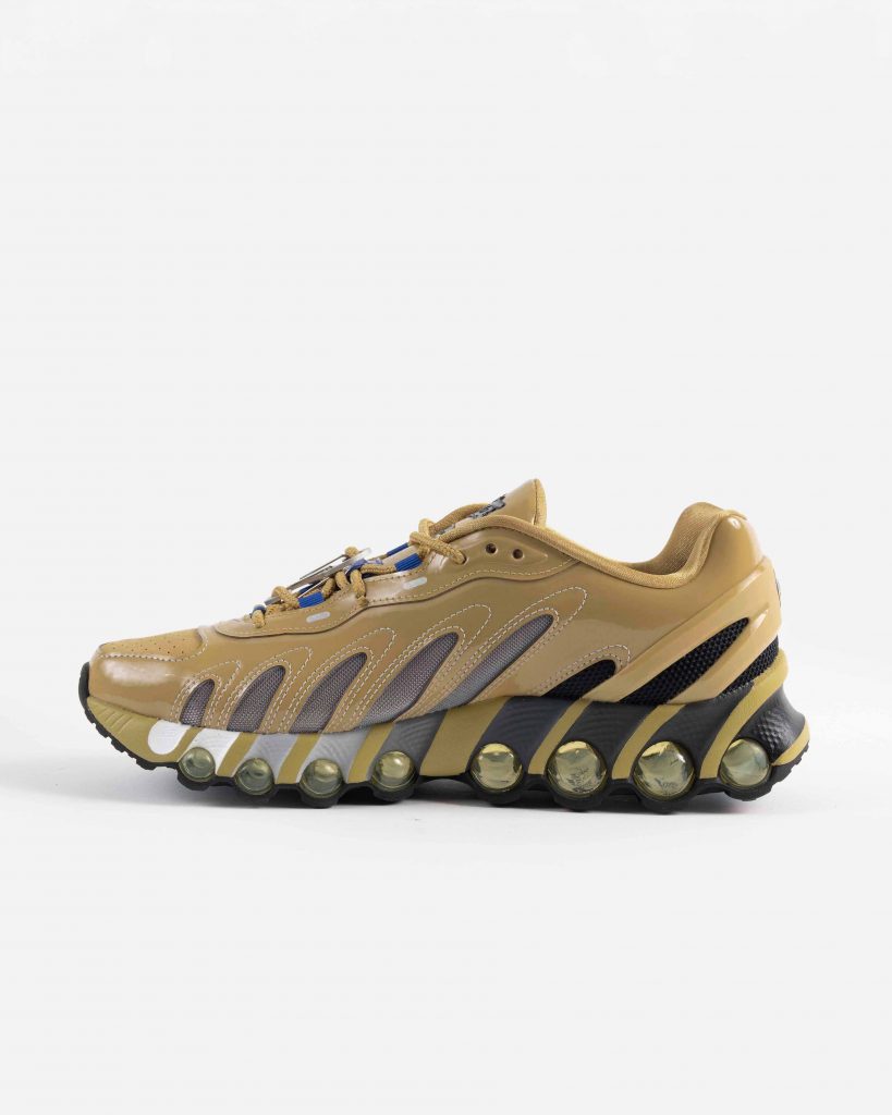 The familiar DN8 framework is still front and centre, sculpted overlays, wave-like lines, and a thick midsole housing Nike’s new Dynamic Air system. Here, the eight air chambers are highlighted with a subtle golden tint, adding a touch of luxury to the understated colour palette.