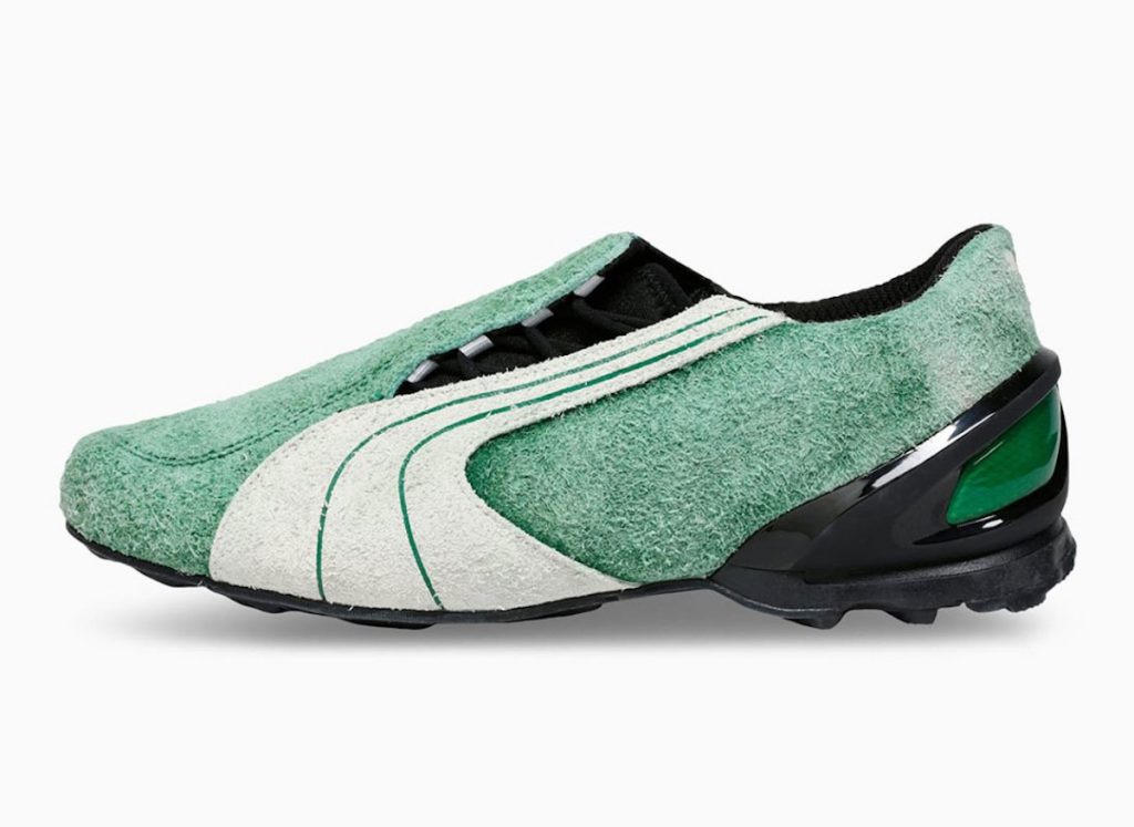 PUMA continues its partnership with KidSuper by reworking the V-S1 under the new Brasil Panels Collection, with this “Archive Green” edition standing out as one of the boldest interpretations yet.