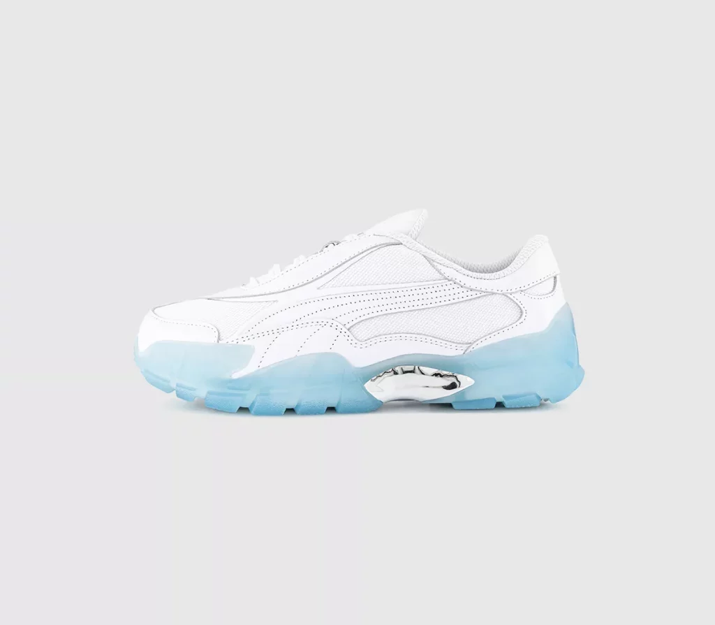 Skepta’s evolving design legacy takes another step forward with the release of the PUMA x Skepta Skope Forever “White.” A vision of cool precision, this sneaker embodies the spirit of techwear minimalism fused with bold grime-rooted styling. The silhouette sees its most refined form yet, with mesh uppers layered in smooth and patent leather, creating a multi-textured profile that shifts in light. Chrome detailing adds a futuristic gleam, while the defining feature, a translucent icy sole unit, evokes frozen terrain and sci-fi atmospheres in equal measure.