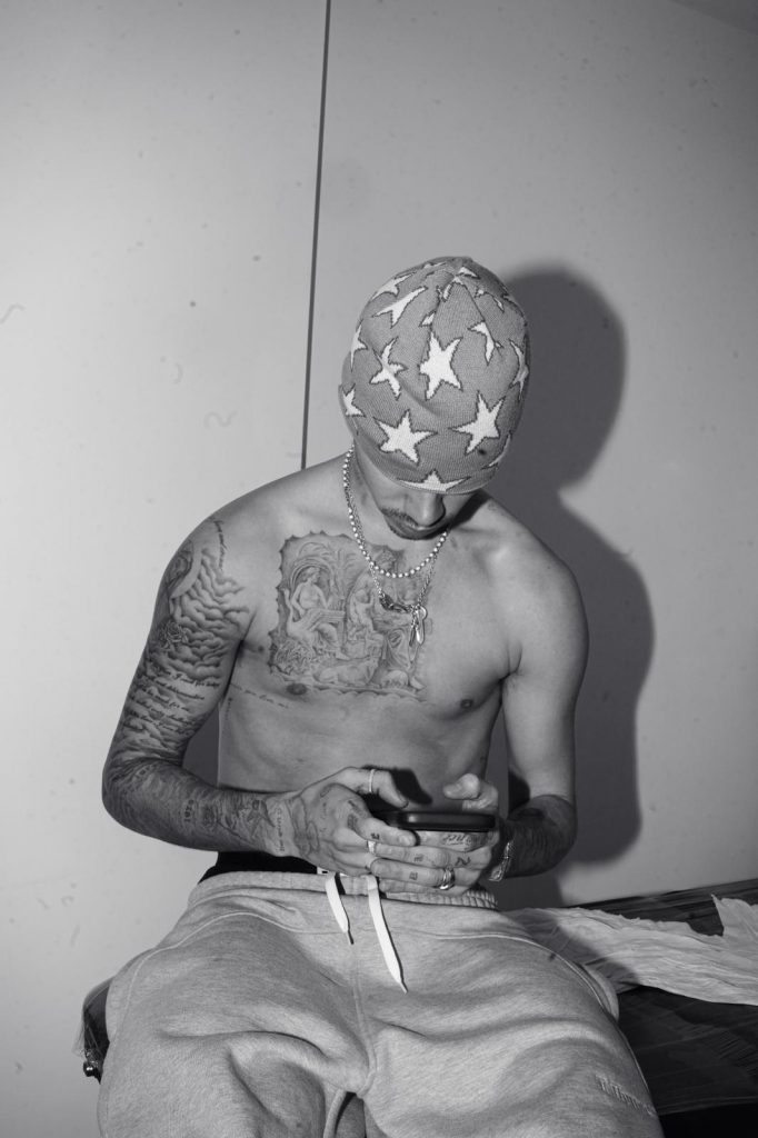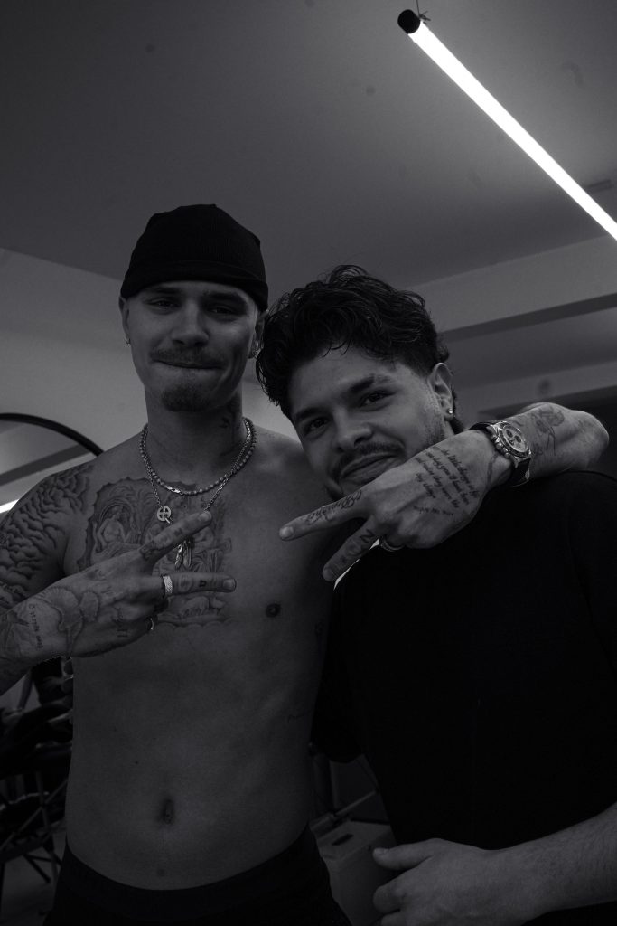 A crowned figure, a distorted clown face and the words “Till Thy Kingdom Come”, that’s the foundation of Romeo Beckham’s latest tattoo, a custom piece designed by Olaolu Slawn and executed by Jesuslovetatts.