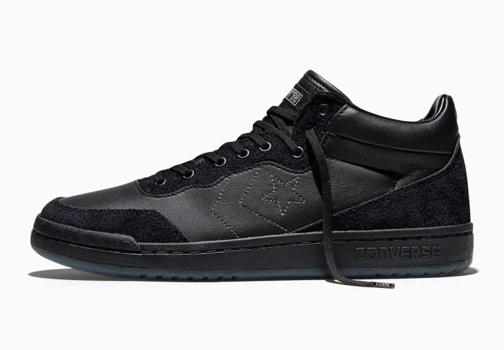 The upper fuses black leather and suede, creating a contrast of matte and gloss textures that feels both rugged and refined. Stitch detailing cuts through the darkness with precision, while the Star Chevron logo, one of Converse’s most enduring symbols, adds quiet authority to the sidewalls. Reflective stitching introduces a practical twist, flashing under city lights during late-night sessions. A breathable nylon tongue lightens the build, ensuring comfort without compromising toughness.
