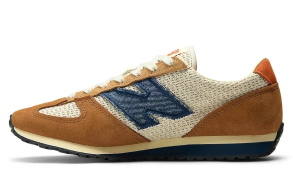 Brown suede overlays dominate the build, paired with navy panels and cream fabrics to create a versatile palette that nods to vintage New Balance runners while maintaining Sézane’s signature understated elegance. A cream mesh base provides a breathable, lightweight foundation, giving the shoe wearability beyond just autumn. The tactile nature of the suede adds depth and richness, ensuring the pair feels premium without being flashy.