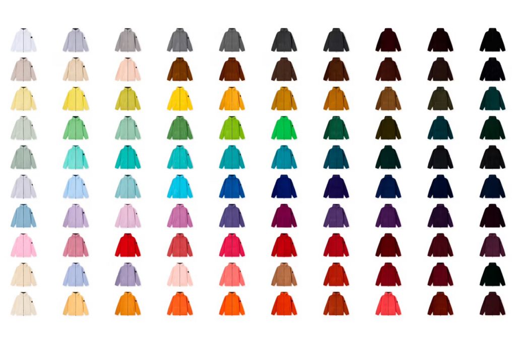If there is one area where Stone Island has consistently pushed boundaries, it’s colour. Garment dyeing has been central to the brand’s identity for decades, creating shades that feel deep and complex than conventional dyed fabrics. By creating 100 jackets in 100 different colours, the brand turns colour into the main character. Stone Island perfectly shows what colour can do when treated as a material.
