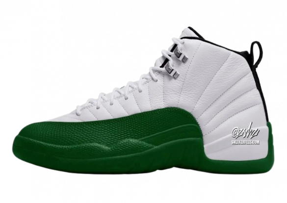 The Air Jordan 12 “Bucks” reworks the classic “Cherry” layout in premium white and forest green leather, complete with metallic...