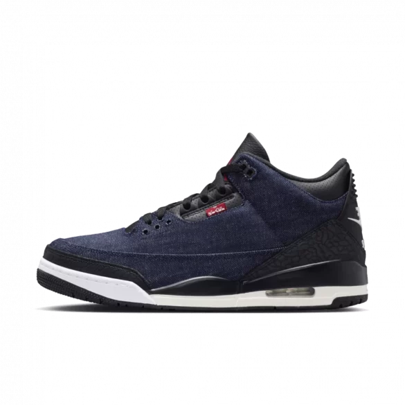 The Nike x Levi’s Air Jordan 3 “Black Denim” blends tonal denim, leather panels, and embroidered branding for a refined,...