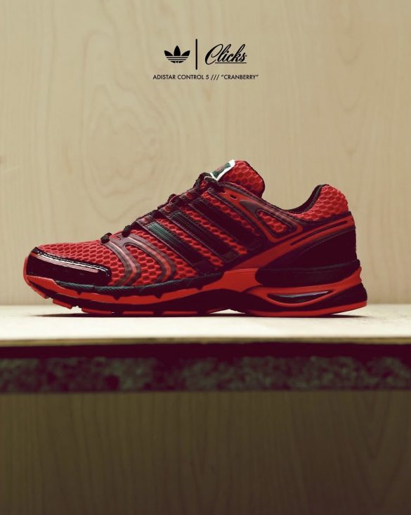 The adidas x Clicks Kicks Adistar Control 5 “Cranberry” revives a performance classic in rich red mesh and black detailing